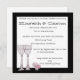 O convite para buffet de coquetel apresenta uma ilustração esbranquiçada de Donna Gotlib de dois copos de vinho e flores cor-de-rosa em um pequeno copo. Há uma grande fronteira negra em torno do convite que é branco-claro. A fonte da tipografia é uma design impressão de caligrafia divertida e caprichosa.