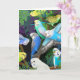 Coloridos periquitos budistas em samambaias nesta pintura original de Carolyn McFann impressa em um cartão de saudação de qualidade. Para papagaios de estimação e amantes de pássaros selvagens em todo lugar.