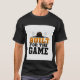 Bold motivational baseball design featuring "Built for the Game" in powerful orange-to-gold gradient typography. A glossy black baseball sits above dramatic stadium lights, creating a premium, energetic look for serious players. This clean, high-contrast graphic delivers a strong athletic luxury vibe perfect for game day or everyday motivation. Ideal for baseball lovers who want a standout shirt that feels elite and professional.