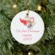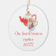 Este ornamento cerâmico tomado partido dobro caracteriza um bule e uma caneca animador e a frase "nosso primeiro Natal junto 20XXX". A data é customizável. O verso do ornamento tem o bule e a caneca sem o texto.