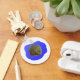 Uma chaveiro com uma foto de uma jovem garganta africana sentada em um lago azul digitalmente criado.
