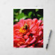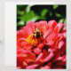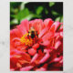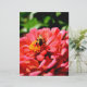 Belo Dia de Verão! Bonito zinnia de coral laranja com um pequeno abelhinho. Foto de H Cooper. O texto é personalizável!
