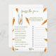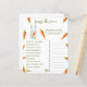 Convites para chuveiros de bebês neutros em termos de gênero. Apresentando o ditado "UM PEQUENO BUNNY ESTÁ A CAMINHO!", uma ilustração de um coelho aquoso (coelho) com cenoura em patas, e muitas cenouras cor de laranja. Itens correspondentes disponíveis.