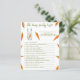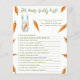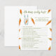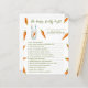 Convites para chuveiros de bebês neutros em termos de gênero. Apresentando o ditado "UM PEQUENO BUNNY ESTÁ A CAMINHO!", uma ilustração de um coelho aquoso (coelho) com cenoura em patas, e muitas cenouras cor de laranja. Itens correspondentes disponíveis.