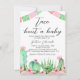 Bunting Taco Bout Um Chá de fraldas de Bebê Convite Pastel coloriu fiesta temed taco sobre um convite para chás de fraldas de bebês com cacto florescente e faixa mexicana. Ideal para alguém à procura de um taco de uma rapariga ou de um convite de chá de fraldas temático de fiesta e, com certeza, para definir a cena.