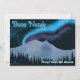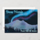 Luzes roxas e azuis da aurora boreal brilham sobre montanhas cobertas de neve em uma noite fria no Alasca. Texto em italiano que diz "Buon Natale" aparece em azul e branco brilhante. Adicione seu próprio texto adicional
