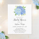 Estes convites de chá de panela apresentam lindas flores e folhas azuis de hidrocloração. Personalize-os com o seu próprio texto. Eles fazem parte de uma coleção que inclui uma faixa de cheios de itens correspondentes. Visite nossa loja ou veja nossas páginas de coleta para ver a faixa de cheios de produtos que você pode personalizar para o seu casamento.