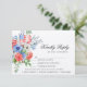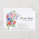 Este design floral vermelho, branco e azul patriótico é perfeito para o verão, 4 de julho. O canto esquerdo apresenta um buquê floral vermelho, branco e azul, acentuado por uma bandeira americana. O verso do cartão RSVP coordena letras florais que soletram RSVP. Todos os detalhes do casamento podem ser personalizados para atender às necessidades do seu dia especial.