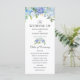 Um cartão de programa de casamento temático floral azul suave exclusivo, personalizado especificamente para o seu futuro casamento.