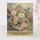 Um belo buquê numa casa de pássaros traz desejos para um Feliz Aniversário. Dentro encontrará um verso de celebração e desejos de felicidade, amor e riso.