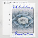 Buquê de Convite para Flores - Um Buquê de Flores Azuis com uma bela Rosa Branca no centro do buquê. Você pode trocar a parte de trás do cartão pelas suas informações de casamento.