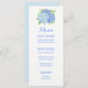 Estes cartões de cardápio apresentam flores azuis de hydrangea. Você pode alterar os estilos de texto e as cores clicando no botão "Personalizar". Produtos correspondentes disponíveis.