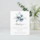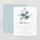 Buquê De Natal Moderno Obrigado. Um alternativo de 4,5 pol x 5,6 pol com preço inferior. Disponível em um STOCK DE CARTÃO SEMI-GLOSS 110 lb, que é a opção padrão (mais espesso para convites), OU um STOCK de PAPEL THINNER FINISH 80 lb FINISH (ideal para gabinetes). Os envelopes são um extra opcional e são ligeiramente maiores que o tamanho da placa. Uma chaleira Natal e florais azuis em pó e buquê foliar estão acima do texto elegante centrado abaixo. Personalize facilmente o texto para seus próprios detalhes.