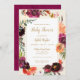Florais de cor d'água de borgonha e pêssego com sotaques dourados adoram estes convites para chuveiros de bebês, perfeitos para chás românticos de verão ou outono, botânicos e de boho.