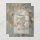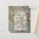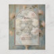 Elegante menu formal de janto em uma coleção de convites de casamento estilo vintage que apresenta uma pintura impressionista, ao estilo do mestre da era Victoriana, de rosas rosa-pinceladas e amarelas-de-manteiga em um buquê floral colocado em um antigo vaso de urna francês sobre fundo azul-castelo quente. Um arco de ouro e marfim em uma moldura tridimensional de aspecto com interior de velo transparente suave termina o estilo clássico de eterno luxo. Esta design foi criada e desenhada graficamente por uma artista e designer internacionalmente licenciada, Audrey Jeanne Roberts, copyright. MSP0142