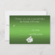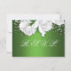 Um lindo e elegante RSVP de casamento verde floral com um magnífico buquê de rosa branco impresso na frente do cartão e um buquê branco menor no verso.