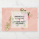 Etiquetas de festa de aniversário ou outras garrafas de evento com um buquê de rosa floral com flores brancas e cor-de-rosa. O fundo é rosa com um padrão floral. Bonito e elegante design. Um quadrado semitransparente, em cima, com uma borda falsa de folha de ouro.