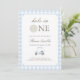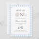 Celebre o seu primeiro aniversário com este charmoso convite azul "Buraco em Um". Com elementos de golfe de aquarela, uma crista monográfica clássica e um padrão de gingham eterno, este design é perfeito para a primeira festa de aniversário de um menino.