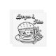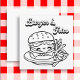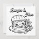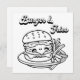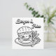 Um cartão plano quadrado. Um lado é uma página colorida com hambúrguer e batatas fritas. A parte de trás é vazio para que você possa guardar e colorir para si mesmo ou você pode enviá-la para um amigo e escrever uma nota na parte de trás.