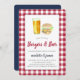 Os convites de festa de noivado casuais "hambúrgueres & cerveja" apresentam ilustrações de aquarela e uma borda de gingham vermelha e branca. Perfeito para as festas de noivado de verão ou ao ar livre, esses convites casuais de chic são facilmente personalizados com seus detalhes de celebração.