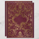 Cobrir elegante, burgundy faux de livros em couro com design decorativo em ouro para seus projetos de descarte e ideias de layouts de página. Papel de papelaria.