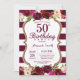 Burgundy Floral 50º Convite de aniversário para mulheres. Vermelho e Festa de aniversário Dourada da Borgonha. Dourada Glitter. Flor Floral de Aquarela Burgundia. Borgonha e White Stripes. 13 15 16º 18º 20 21rua 30 40º 50º 60º 80 de 70 100º, qualquer idade. Digital Imprimível. Para mais personalização, clique no botão "Personalizar" e use nossa ferramenta de design para modificar este modelo.