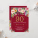 Burgundy Floral 90 Aniversário Convite para Mulheres. Flor Floral de Aquarela. Glitter preto e Dourado. Rosa, Amarelo, Laranja, Flor Roxo. Aniversário Adulto. Para mais personalização, clique no botão "Personalizar" e use nossa ferramenta de design para modificar este modelo.
