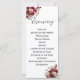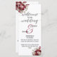Esta Placa do Programa de Cerimônia de Casamento de Script Moderno Floral Burgundy pode ser facilmente personalizada adicionando seus próprios detalhes.