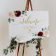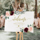 Sinal de boas-vindas floral da Burgundy, sinal de boas-vindas de ouro, sinal de boas-vindas de casamento, sinal impresso, modelo, sinal de evento, placa de porca, casamento elegante, casamento gibi, casamento dourado, coração dourado, sinal de boas-vindas caligrafia, sinal de boas-vindas de casamento caligrafia