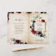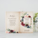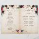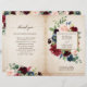 Marinho vermelho-escuro com cruz-azul-roxo, cor-de-rosa-rosado, com modelo de programa de casamento floral com folhagem botânica verde e folhas de eucalipto em fundo de madeira. Esta design fácil de personalizar pode combinar facilmente com as cores do casamento, estilos e temas e é uma escolha perfeita para o meio do outono ou casamentos no inverno. Você pode encontrar mais designs correspondentes na minha loja ou entrar em contato comigo se precisar de ajuda na personalização do design.