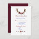 Um design russo da Boêmia para eventos especiais, todas as estações! Este design apresenta galhadas de veados, buquê de flores de marsala, flechas com flores de marsala e, no verso, um fundo de burlões. Use a ferramenta Personalizar para adicionar suas informações. Para mais, visite, por favor, a minha Coleção de Antadores Florais Burgundy Marsala.
