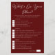 Um elegante jogo de chá de panela Burgundy O que há no seu telefone para uma festa noturna. Personalize estas folhas de papel modernas com as suas próprias opções pontuais para os seus amigos. Um divertido jogo de festa de solteira personalizável.