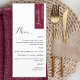 Porquê gastar cartões de lugar e cartões de menu quando pode ter um Menu elegante All-in-one personalizado com cada nome de convidado! Design contemporâneo, simples e elegante com uma bela caligrafia escrita à mão. Estica no canto superior direito em Burgundy com nome de convidado em branco. De volta no mesmo burgu que stripe. Capacidade de alterar ambas as cores de distribuição ou vice-versa selecionando "personalizar mais". NOTA: adicione um nome de convidado a cada menu, adicione um menu no carrinho de compro; depois volte ao menu, adicione o segundo nome de convidado e adicione o menu para comprar o carrinho...continue com este processo com todos os nomes de convidados na sua lista. Para primeiros nomes de convidado curtos, adicione com a barra de espaço do teclado alguns "espaços" vazios antes do nome, para centralizá-lo melhor. Design disponível em uma variedade de opções de cores. Coordenando cartões de plano de assentos com nomes de convidados disponíveis.