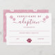 Burgundy Pink Paw Imprime Certificado de Adoção