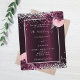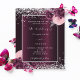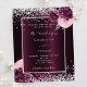 Um fundo burguês profundo decorado com florais robustos e cor-de-rosa, flores e falso brilho prateado, faíscas. Personalize e adicione seus nomes e detalhes do casamento. Letras negras.