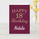 Burgundy Red e Dourada Glitter 18º Cartão de aniversário com nome personalizado. Para mais personalização, clique no botão "Personalizar" e use nossa ferramenta de design para modificar este modelo.