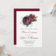 Estes convites para casamento de aquarelas têm rosas de burlômetros e folhas de design. A parte de trás dos convites tem um monograma com noiva e iniciais de noiva. Há uma boa variedade de opções de papel para escolher. Estes convites de casamento de rosa burgundy fazem parte de uma coleção que inclui uma gama de cheios de papelaria de casamento igual, como cartões de resposta, cartões de informação, etiquetas de endereços, autocolantes, programas e muito mais.