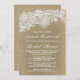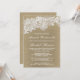Burlap + Lace Wedding Convites de chá de panela - apresenta um elegante local impresso floral no topo sobre um fundo de burlap.