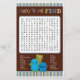 Descrição do design Um design original EXCLUSIVO disponível somente em MonkeyHutDesigns. Cartão de folha de jogos de chá de fraldas. Tema do Chá de fraldas Monstros Peek-a-Boo com padrões azuis, castanhos verdes e brochuras e faixas. Corresponde ao convite para chá de fraldas do MonkeyHutDesigns #063. BABY WORD FIND - É muito divertido adicionar a um chá de fraldas! Este é um achado de palavras de nível médio, então não é muito fácil e não muito duro. Para obter a chave da folha de jogo, entre em contato comigo em: MonkeyHutDesigns@gmail.com