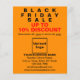 Folheto personalizável com a venda de Black Friday, seu nome comercial e outras informações da sua empresa, um material de marketing que pode ser usado para atrair mais clientes. Personalize-o e distribua-o para atrair mais clientes para comprar seus produtos ou clientes para gostar de seus serviços. As cores design são textos pretos e vermelhos sobre fundo cor de laranja. Para personalizar este folheto, especifique o desconto percentual que você oferecerá e as datas de venda. Carregue também o logotipo da sua empresa, digite seu nome, endereço, número de telefone, e-mail e site ou a página de mídia social da sua empresa. Verifique a aparência nos lados frontal e traseiro após digitar textos e carregar logotipo. Se a aparência lhe agrada, você pode colocar seu pedido agora. Se você precisar redimensionar e mover os textos e o logotipo para o ajustado neste folheto ou no tamanho que você escolher, mude na ferramenta design. Você também pode alterar a cor do plano de fundo, a cor da fonte e o estilo da fonte na ferramenta design. Desejando mais vendas nesta Sexta-Feira Negra.