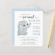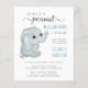 Um bebê amigo do orçamento fez um convite com "Our Sweet Little Peanut Is On Your Way", escrito em uma mistura de tipografia de cinzas azuis e suaves e um roteiro bonito com pestanas, e uma aquarela de um lindo bebê elefante. Personalize os nomes do bebê e da mãe na tipografia azul e os detalhes do chá na simples tipografia de cinzas moderna.