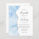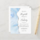 A borda esquerda deste elegante convite de casamento moderno apresenta uma cor azul-d-água pastel, cor-d-água, aparada com falso brilho prateado. O texto personalizável combina manuscrito, copperplate e fontes itálicas em cinzas de carvão em um fundo branco. O verso fornece espaço para detalhes do casamento em um fundo branco sólido, junto com um código QR que os convidados podem digitalizar para visitar seu site e RSVP.