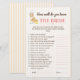 Make your bridal shower extra fun with this Butter Together “How Well Do You Know the Bride?” game featuring adorable bread and butter illustrations, a sparkling champagne glass, and a chic striped background. Perfectly coordinated with your butter together bridal collection, this elegant and playful game keeps guests entertained while celebrating the bride in style. Personalize to match your theme for a cohesive, memorable party setup.