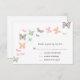 Delicar borboletas em voo decoram este RSVP. É apresentado no papel de base; no entanto, recomendo o peso e a textura do papel de linho. Também se coordena facilmente com a coleção de casamento Purple Butterfly Kisses.
