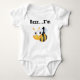 Uma abelha e um texto tão fofinhos que diz "Bzzz... Eu sou 1" em t-shirts de primeiro aniversario de Buzz Bumblebee, fatos de corpo, cartas, autocolantes, canecas, ímanes, sacos de tote e outros presentes de primeiro aniversário.