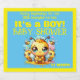 Começos inusitados para nossa abelha de mel em abelha! Chá de fraldas de bebê em amarelo e azul, zumbindo com alegria: Dando boas vindas ao nosso mais novo dedo, neste lindo tema de abelha para o nosso chá de fraldas. Rótulo da garrafa de vinho espumante.