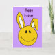 Um belo cartão de coelho de páscoa de smiley face de desenho animado diz Felz pascoa no exterior e dentro de Páscoa Hoppy com muito mais pequenos coelhos de Páscoa sorridentes.