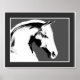 Cabeça de cavalo bonito feita em impressão de poster preto e branco.