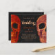 Orçamento da cabeça gótica Salve a data laranja, estilo vintage preto convite de casamento de Halloween convite cartão plano. Diversão, legal, assustadora, celebração Hallowedding. Até que a morte nos faça um roteiro. Imagem copyright Marg Seregelyi Fotografia.