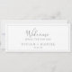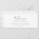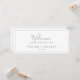 Este cabeçalho minimalista de boas-vindas de prata é perfeito para um casamento simples. A design romântica moderna apresenta cinzas clássicas de prata e tipografia branca, pareadas com uma caligrafia rustica, mas elegante, com estilo antigo, com letra de mão. Personalizável em qualquer cor. Mantenha o design simples e elegante, como está, ou personalize-o adicionando seus próprios gráficos e trabalhos de arte. A placa impressão na frente e atrás (lado duplo). Verifique a coleção de placas de números de tabela de coordenação.